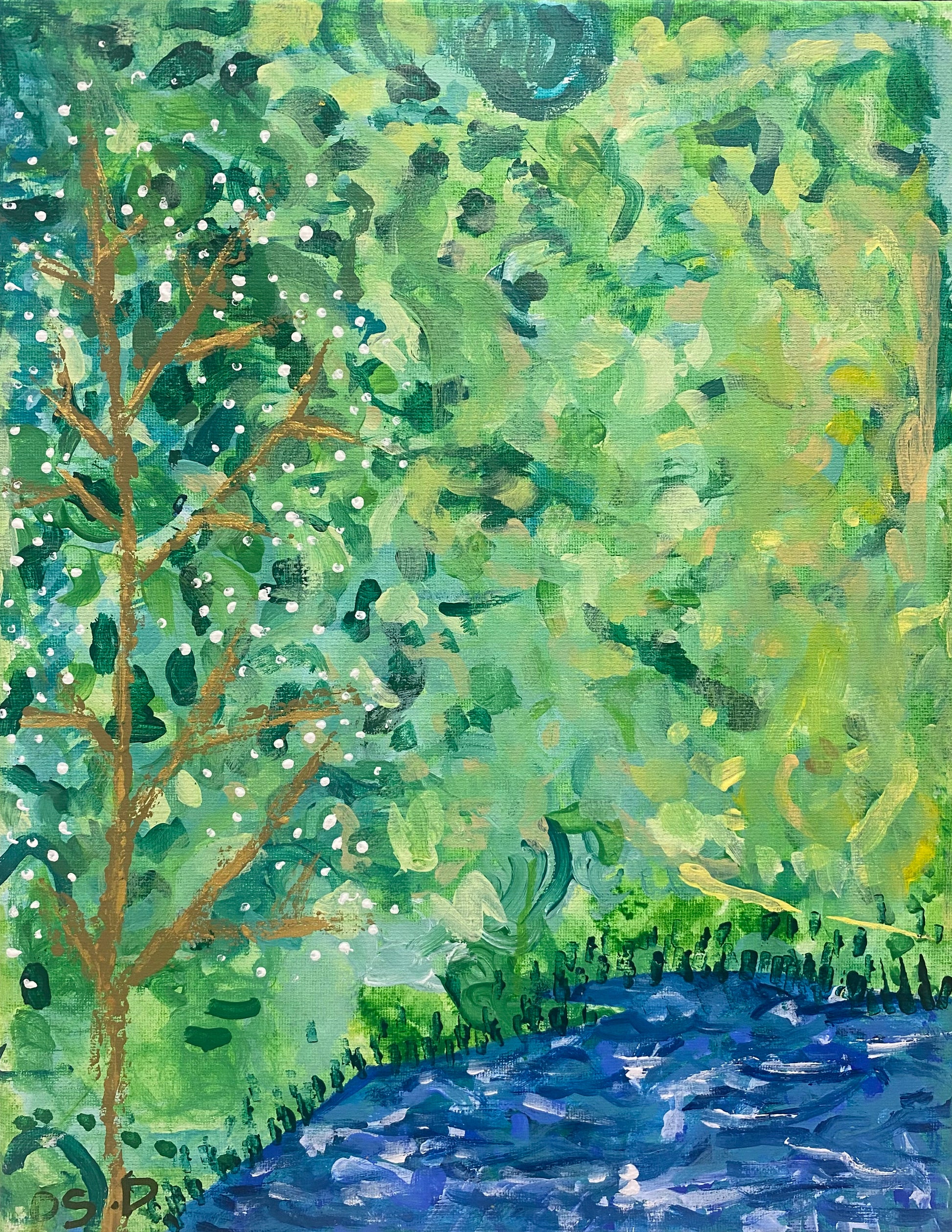 Sue creates her images drawing on nature and gardens for inspiration which she finds engaging and soothing. From muted tones to vibrant colours, her gentle style captures a unique emotional expression and insight into her creativity and imagination. Sue enjoys painting in acrylic and watercolour, sketching with pencils and soft pastels. Sue will take a walk for a break during class and get’s a cuppa to see her through as she relaxes in the studio with friends.